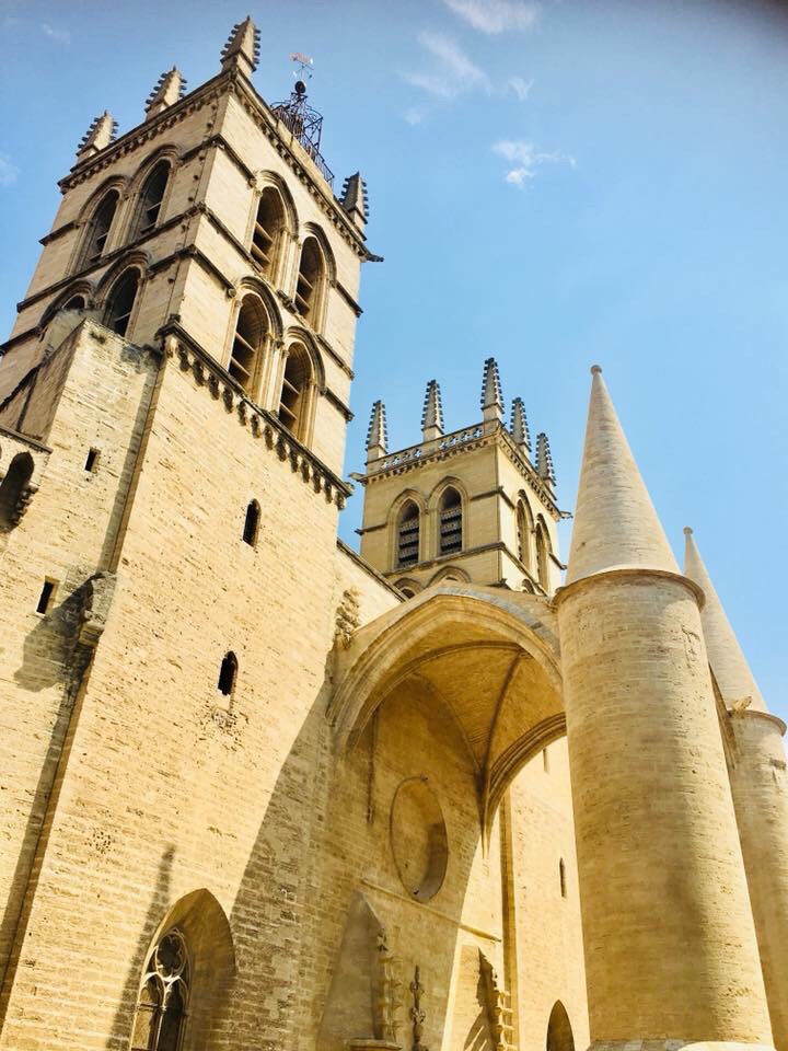 Cathedral, the Roman Catholic seat of the Archdiocese of Montpellier. Built in 1364, it was once attached to a monastery, but both buildings were gravely damaged during the War of Religions in the 16th Century. The archway is quite famous, found on all the postcards and calendars. Visitors admire the beautiful organ inside, the exquisite stained glass windows and the enchanting bell tower. It’s one of the biggest cathedrals in the Languedoc region and a well worth a visit.