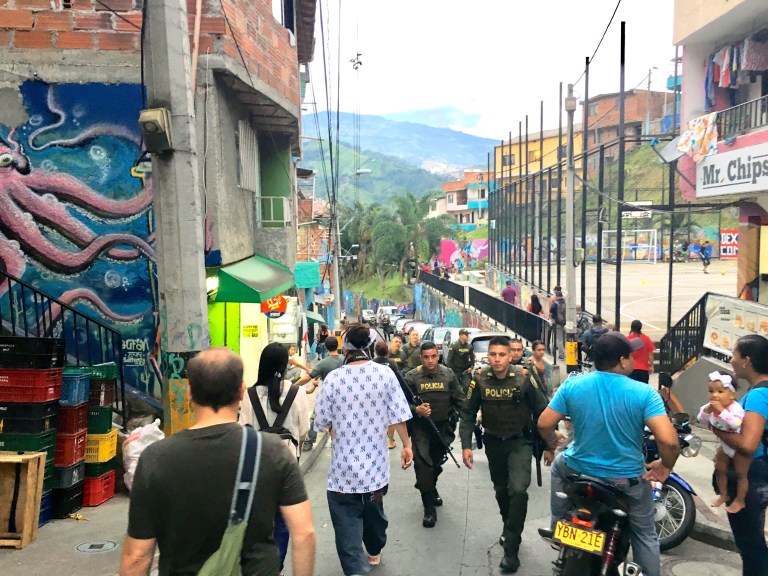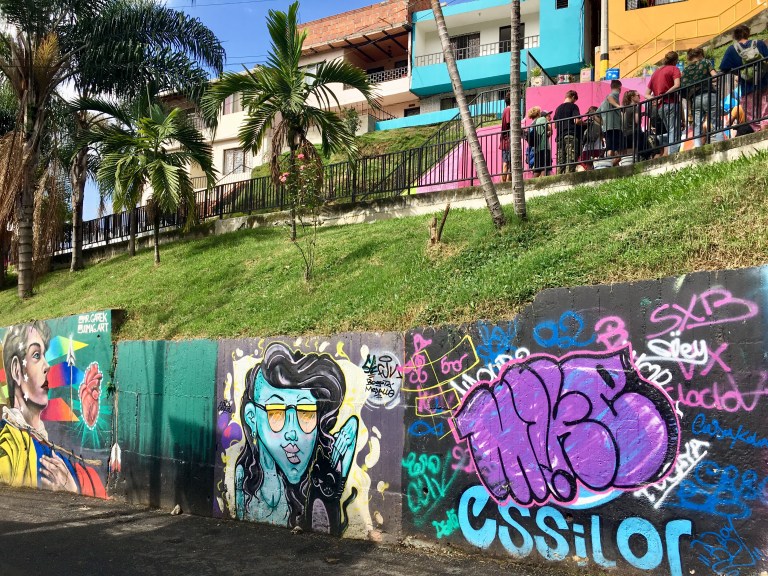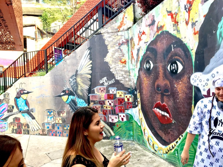 And it has, and Medellin is flourishing. They showed us every piece of street art and told us the stories that went with them. How green stood for hope and red for bloodshed. How the birds stood for the two helicopters that flew overhead, patrolling every day, 24/7. How their city is a mix of indigenous peoples and Spanish people, everyone joining together to create this incredible storyline. How the military is now their hero and their protector, as they are the ones that continue to keep their children safe. The police, like in many cities these days, are not always welcomed with open arms, but according to Rafa, Medellin – and especially Comuna 13 – is leaps and bounds better and safer than it used to be.