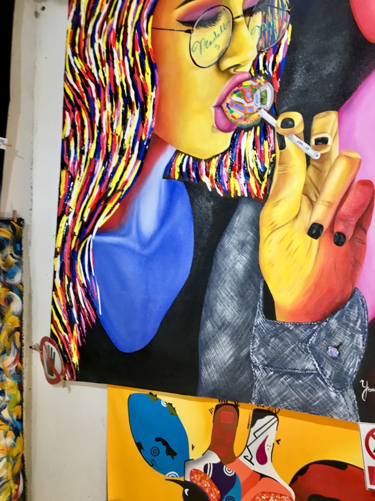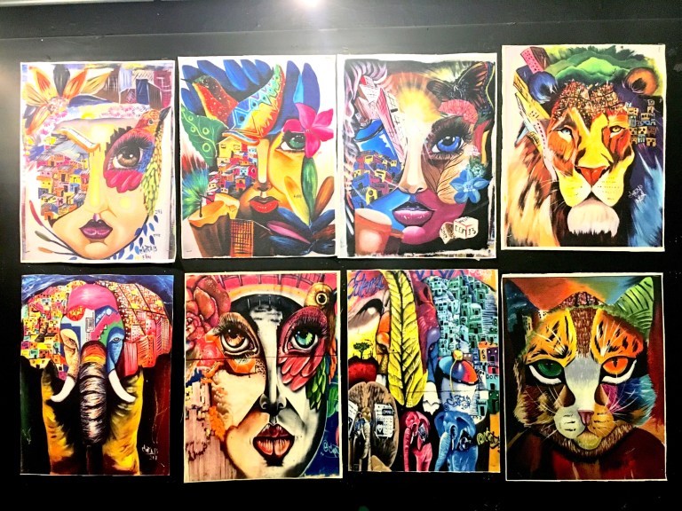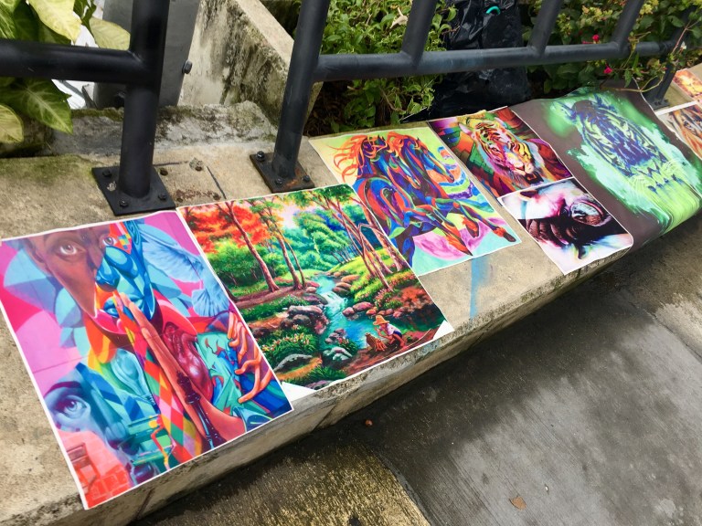 We went into a local art shop, where the artists painted bright, vibrant pieces of people, animals and symbols of the city. Rafa explained how each painting had something that represented Medellin in it, whether it was the tramway or simply the color green, the color of hope for Medellin. This local family of artists created incredible pieces. I bought three copies of the large paintings for about $10 each. They were printed on a type of stiff felt, so quite durable and easy to transport.