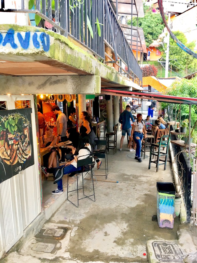The were lots of young men out, mostly makeshift patrolling, if you will. I would have been more willing to go alone to Comuna 13 had I seen more local gals meandering around. There were lots of families, and lots of children, but this community is super close knit (they had to be), so it almost felt like I was walking into a tribe. A welcoming, joyful, creative, artistic tribe with delicious food, but still something much different than I found even 20 minutes down the hill in the city center of Medellin. It was almost like a separate city in itself.