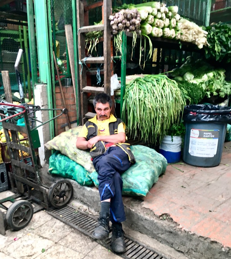 We started at the Paloquemao Market, where we picked out different fruits, veggies, herbs and meat to bring home to make lunch. Gerardo was an English teacher who taught other Colombian English teachers to help improve their English for their classes, so his language skills were amazing. (I’m an English teacher, too. I told him that was so impressed!) He was very easy to talk to. He knew so much about the cuisine, and was very happy to meet and host tourists, and to help people understand the Colombian culture through his eyes.
