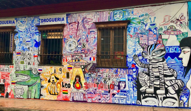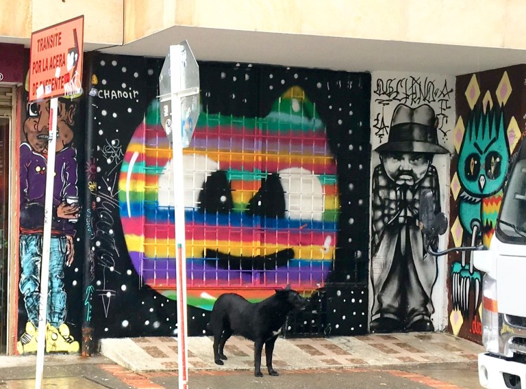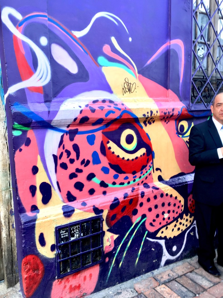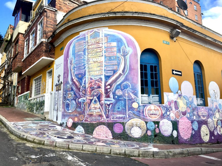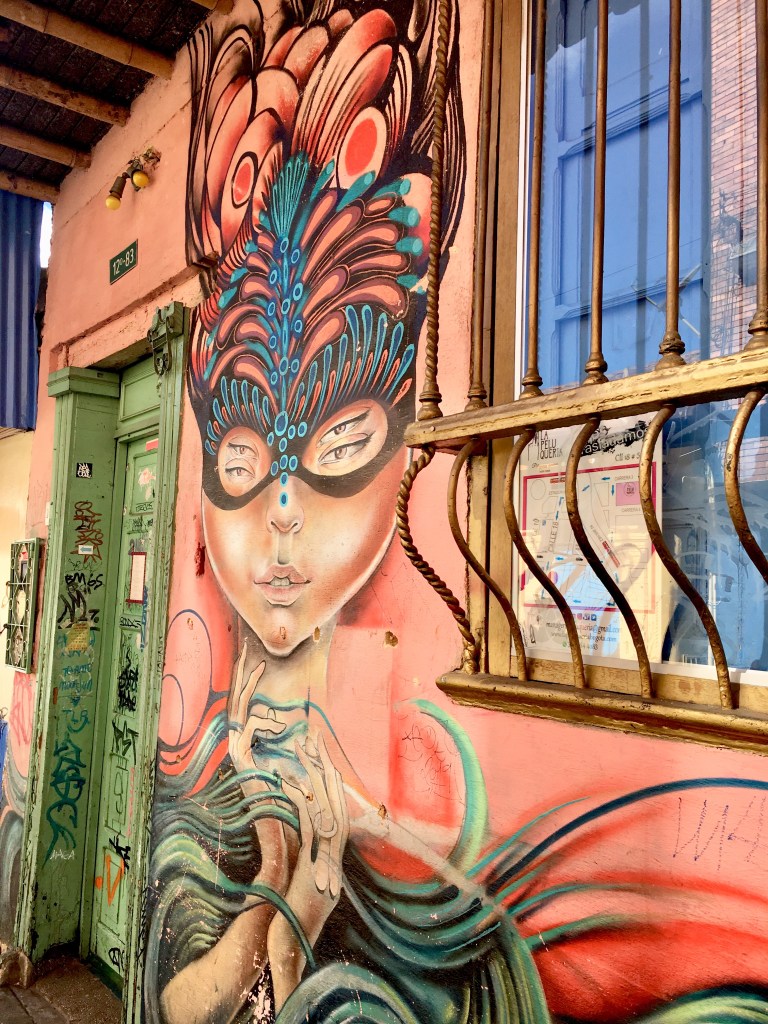 How exciting to finally be in Bogota, a colorful city with 8 million people. I had an early flight from Medellin in order to check into my (9th floor!) Airbnb, just in time for my Free Graffiti Tour! I took an Uber from the airport. Like all Uber rides in Colombia, I had to sit in the front when the driver picked me up, because Uber is technically illegal here.