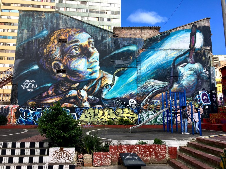 All that being said, Bogota’s Street Art was amazing. It wasn’t quite like Comuna 13 in Medellin, but it was everywhere and freaking beautiful. There were specific artists who were allowed to use the giant mural spaces, and Mr. Impatient and Unkempt told us that each artist tried to highlight certain aspects of life in Bogota. Some brought attention to the indigenous roots while others focused on current events: immigration, hunger, politics, creating a safer Colombia.
