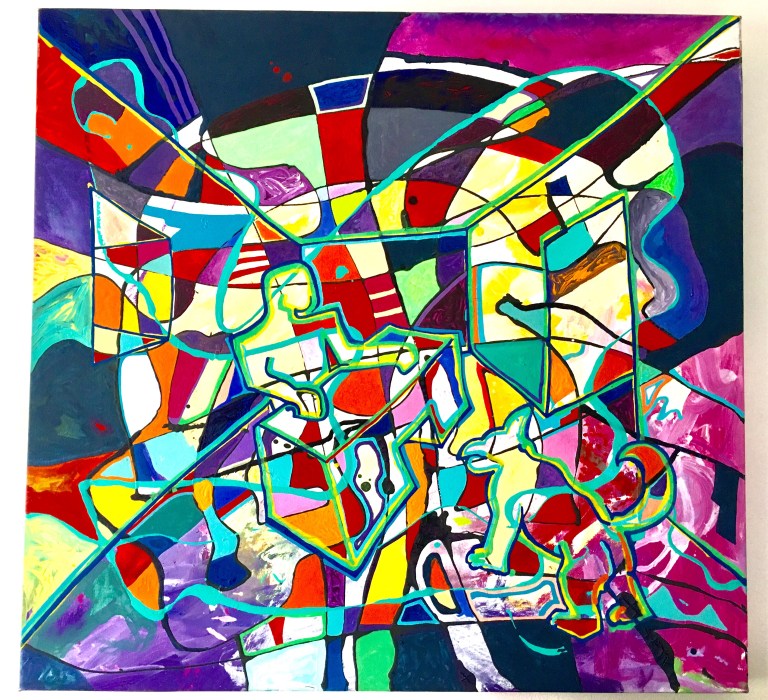 We passed by a bright red door decorated with flowers and leaves, intensely abstract paintings and somewhat toned down murals that, at first glance, showed beautiful scenes and smiling people, but in the background, there were people being portrayed as puppets, nuns worshiping TVs and small children playing with bombs. A way to say that things are not always as they appear from the outside. Sometimes the truth is much more complicated than we expect. People are not always smiling because of genuine happiness.