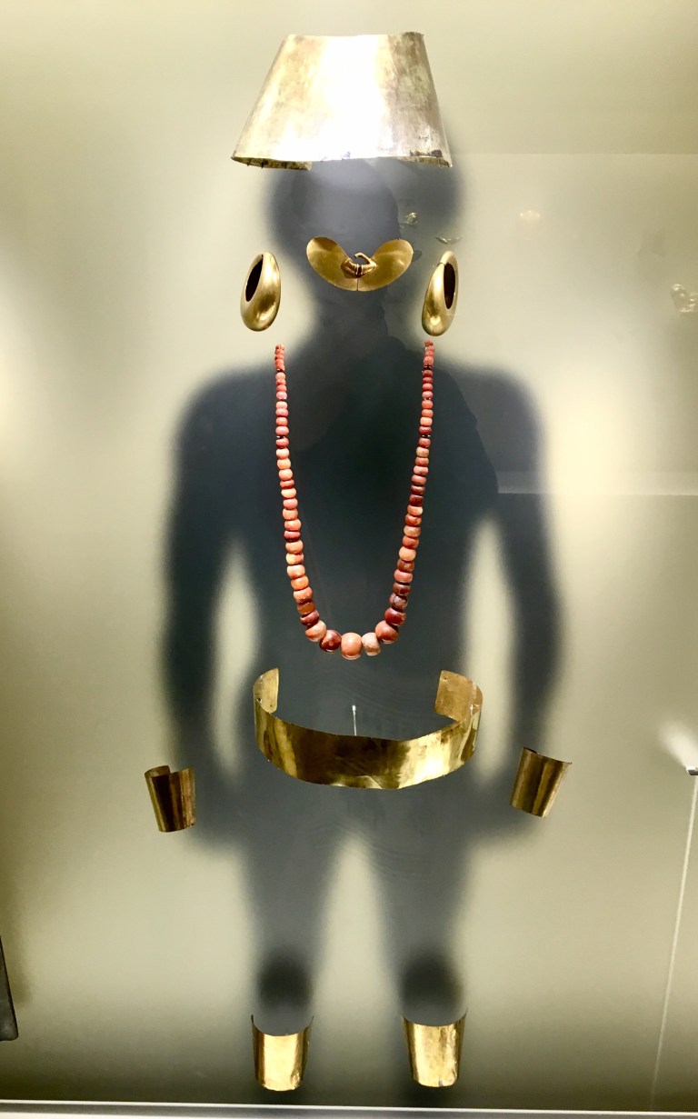 In the morning, I quickly popped by the gold museum! This is the most popular museum in Bogota, and has over 55,000 pieces of gold and gets half a million visitors per year. Considering tourism is only just beginning (again) in Bogota, these numbers of quite impressive. I highly enjoyed all the gold jewelry and shadows of people made from a screen with gold jewelry attached to show where a person would have worn these ornate pieces.