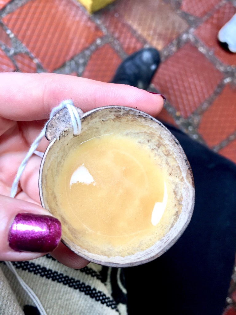 Our group settled into a cafe, where Santiago let us taste some of this local drink that resembled apple cider. It was fermented with a fizzy texture, but I didn’t dislike it. He then passed around a bottle with the famous energy drink, Chucula. Or rather, he showed us the ingredients in a bottle and our group had to guess all nine: corn, coffee, chocolate, cinnamon, cloves, chickpeas…and 3 others that I forgot.