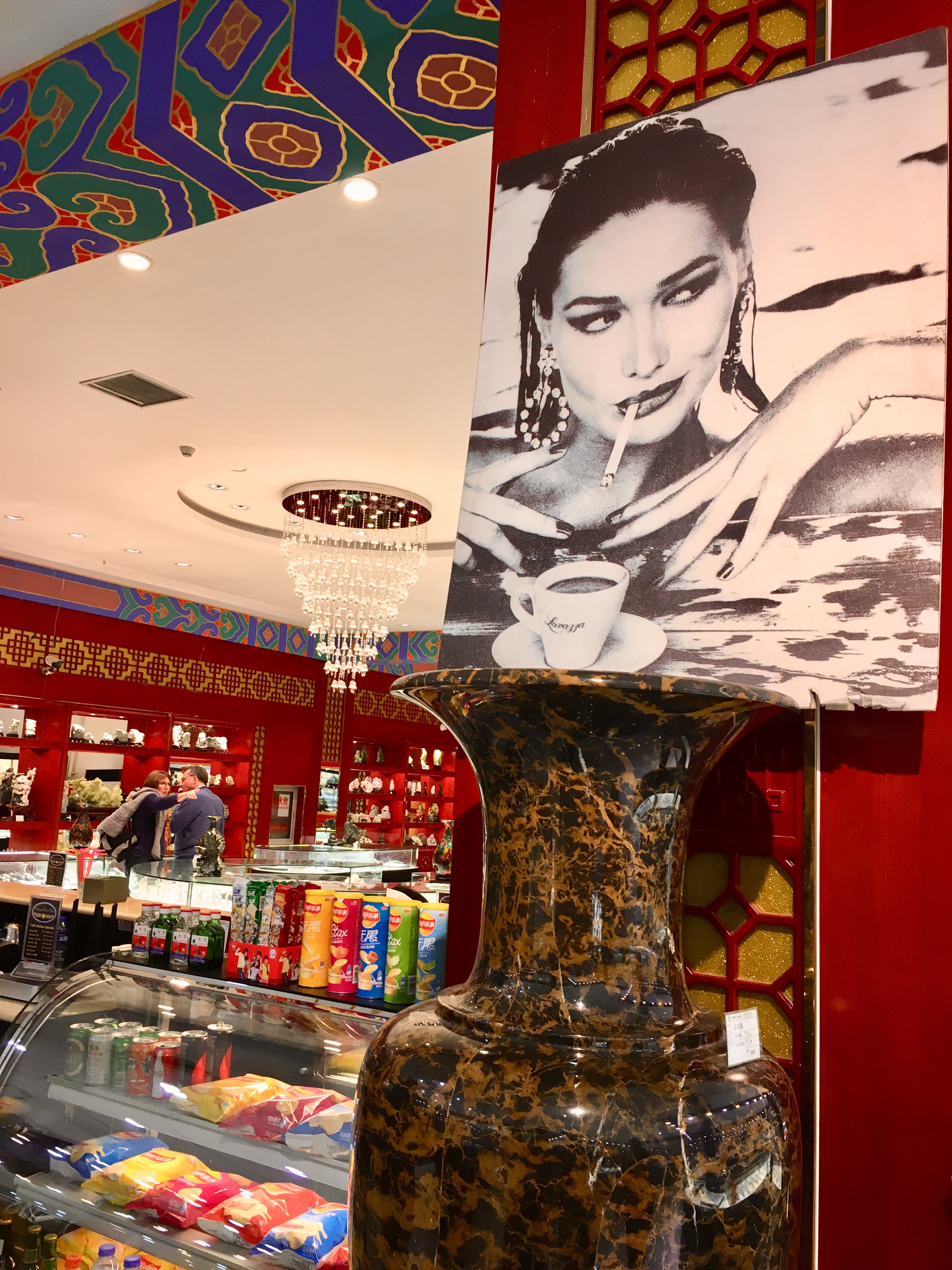 I saw the most beautiful sculptures, tea sets and museum-worthy displays that were worth hundreds, thousands, and hundreds of thousands of dollars. The big jade table was $100,000…and they didn’t like that I was sitting at it. Then, an older man who clearly could afford said table sat down and the sales ladies were all smiles and welcoming and invited us all to sit as they showed us how the very top of the table spun around like a record player. I must say it was very cool, but we joked how of those stools were probably too big to fit under the seat in front of us. 😂😂
