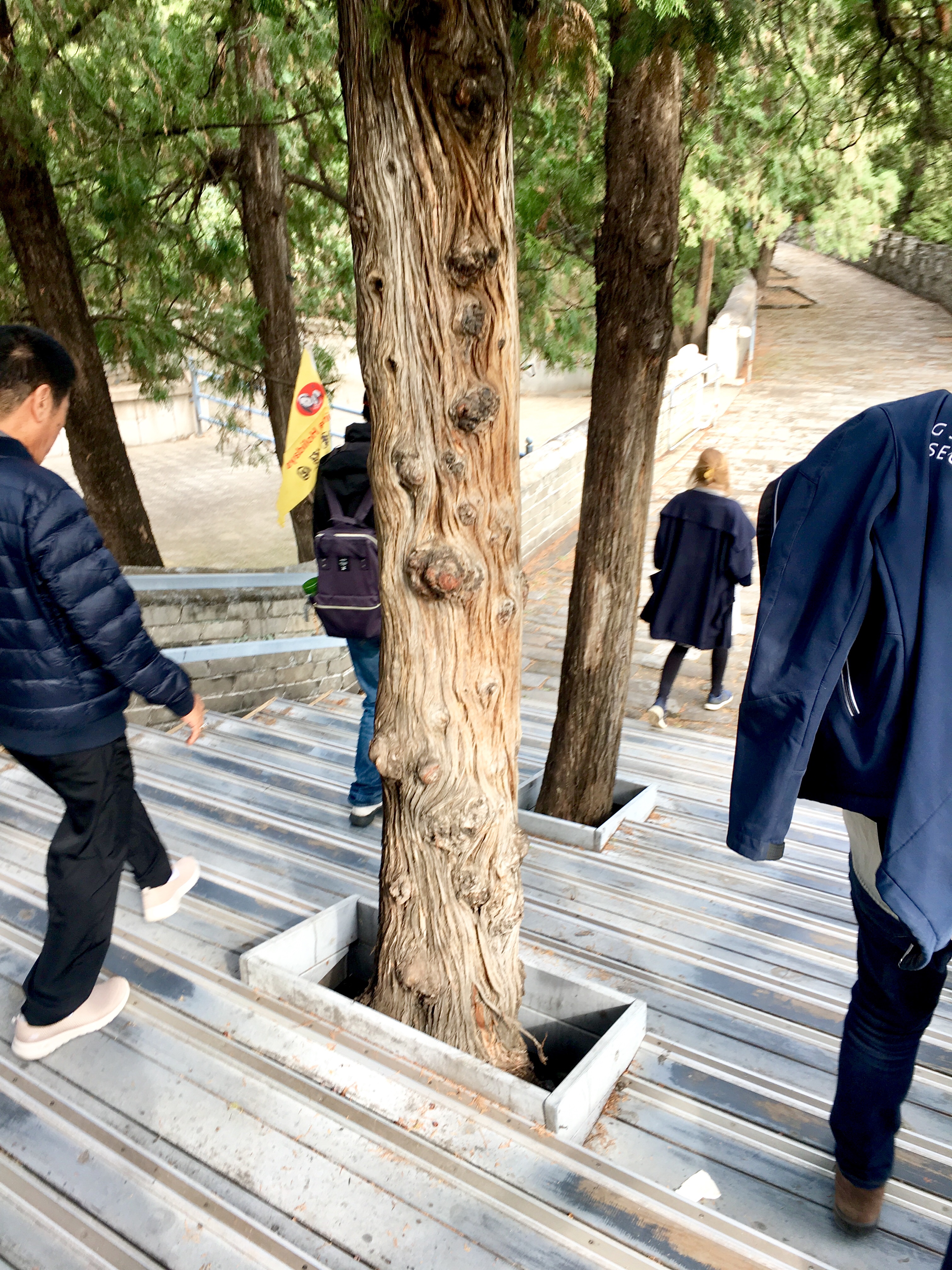 We ate lunch before we arrived at the wall. It was a nice restaurant that had large plates of food out for us, but when we arrived, the food had clearly been sitting out for an hour at least, as everything was lukewarm and wilted. Nothing fresh of course, as China doesn’t want to poison the tourists, haha, but the sauces were – again – really, really good. There was a mushroom sauté and then some zucchini and carrots and tomatoes, all cooked with spicy sauces, on a bed of rice. We got one bottle of Sprite per table that we got to pass around. Water, beer or tea was extra $$. The food was okay, but the actual place was freezing and very well might have actually been AIR CONDITIONED, even though it couldn’t have been more than 45 degrees. The front doors were wide open, as well as the windows and small exits. I guess insulation wasn’t a thing for this restaurant. I was so glad I bought that monstrous green and black coat. 😂❤️