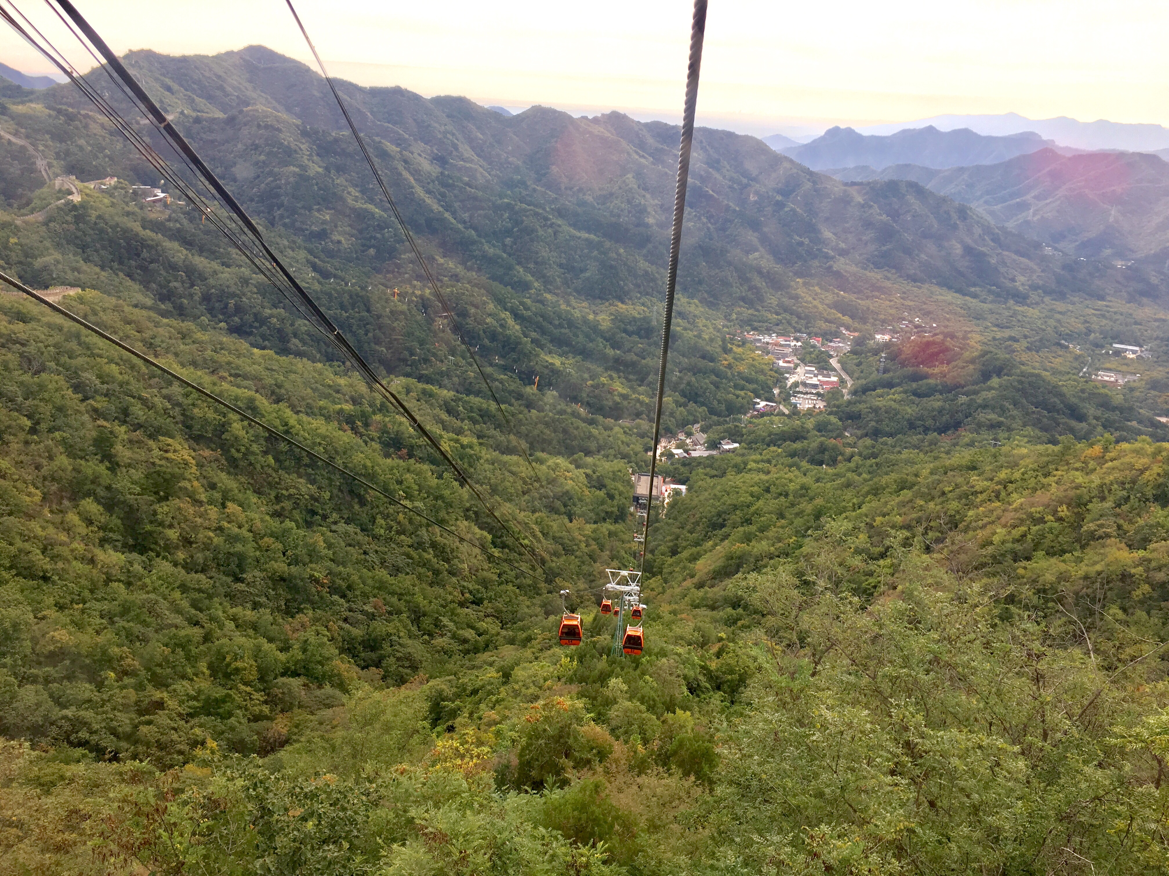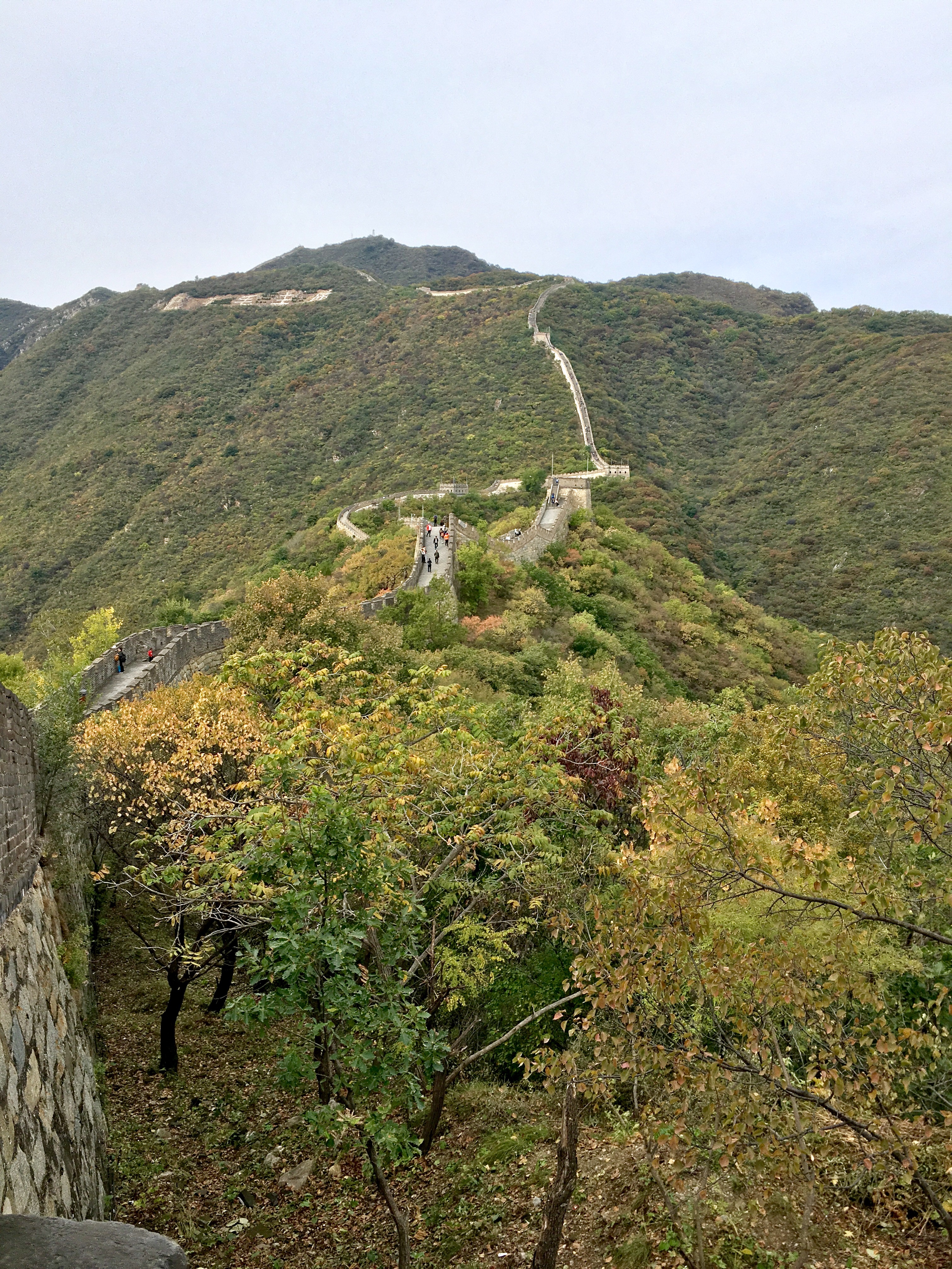 I chose the tour that went to Mutianyu, supposedly the prettiest part of the Wall. Even though it was further outside of Beijing and way out into the mountains, it wasn’t as busy as the main entrance and there was a toboggan that you could slide down if you were really brave. (I wish I had done this, but Paul said it wasn’t very popular, which makes me think it might not have been incredibly safe, so my little group went with the cable car.) We were told that, once on the wall, we could either go left or right. Left was harder, right was easier. Naturally, we went left.