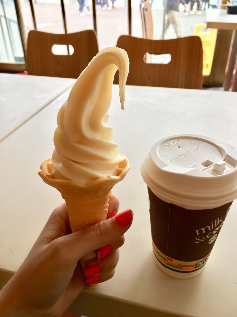 I grabbed some milk tea and ice cream (to put in said tea) at the little cafe. However, my milk tea didn’t taste like tea, and the “milk” was clearly an unnatural powder containing no actual milk. The ice cream tasted like a mix between buttermilk and lemon juice (“vanilla” my tushie!). When I put it in my tea, it just sat at the bottom of this piping hot liquid and didn’t melt at ALL! 😱🤮 It even got a little warm. No natural ice cream would EVER keep it’s frozen state in a cup of piping hot liquid for longer than a minute or two. Clearly, this ice cream was not something that should be consumed.