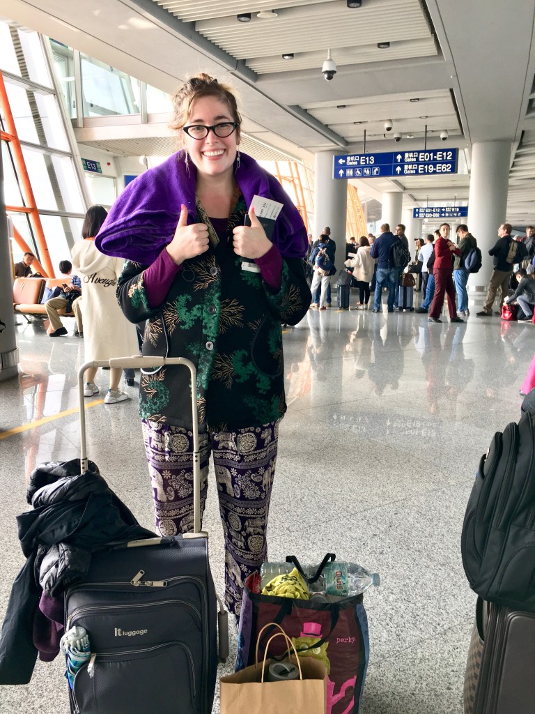 But then my flight from Chicago to Colorado was delayed. Nooooo! I managed to talk my way onto a different flight to Colorado that was boarding. I was the last name to be called on the standby list and literally jumped for joy when they announced my name. I was on hour 23 of being awake, and I was overjoyed that I didn’t have to wait three more hours for my delayed flight to head home. I had the very last seat on the plane, right in the middle. The gate agent asked if I had baggage and her eyes popped out of her head when I said that I’d only brought a carry on…to China…for 3 weeks 😂.