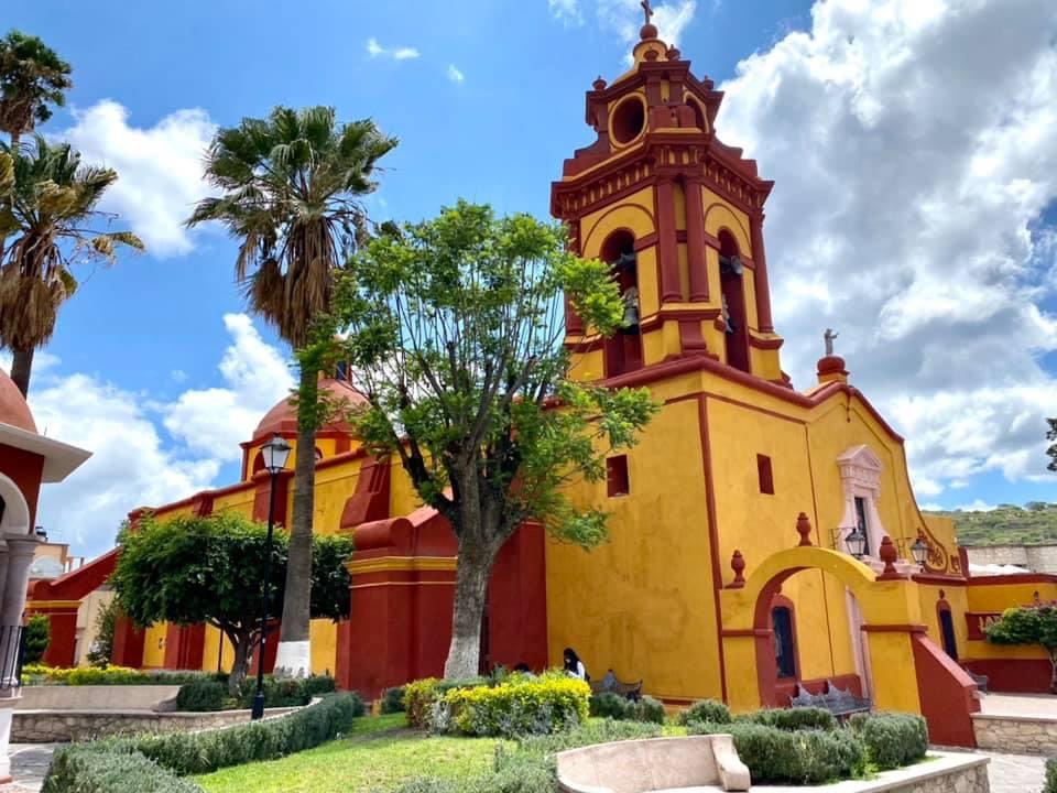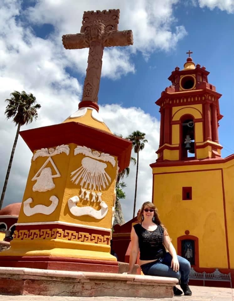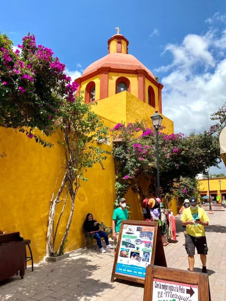 The beautiful church in the center of town was dark red and bright yellow, sturdy and recently painted, with a pretty gazebo right next-door, all covered in purple flowers. The Peña del Bernal, A.k.a. the giant rock-hill-thing, was always visible in the background and in just about every picture. (Sometimes it seems like it would move in order to be in the picture 🤣)