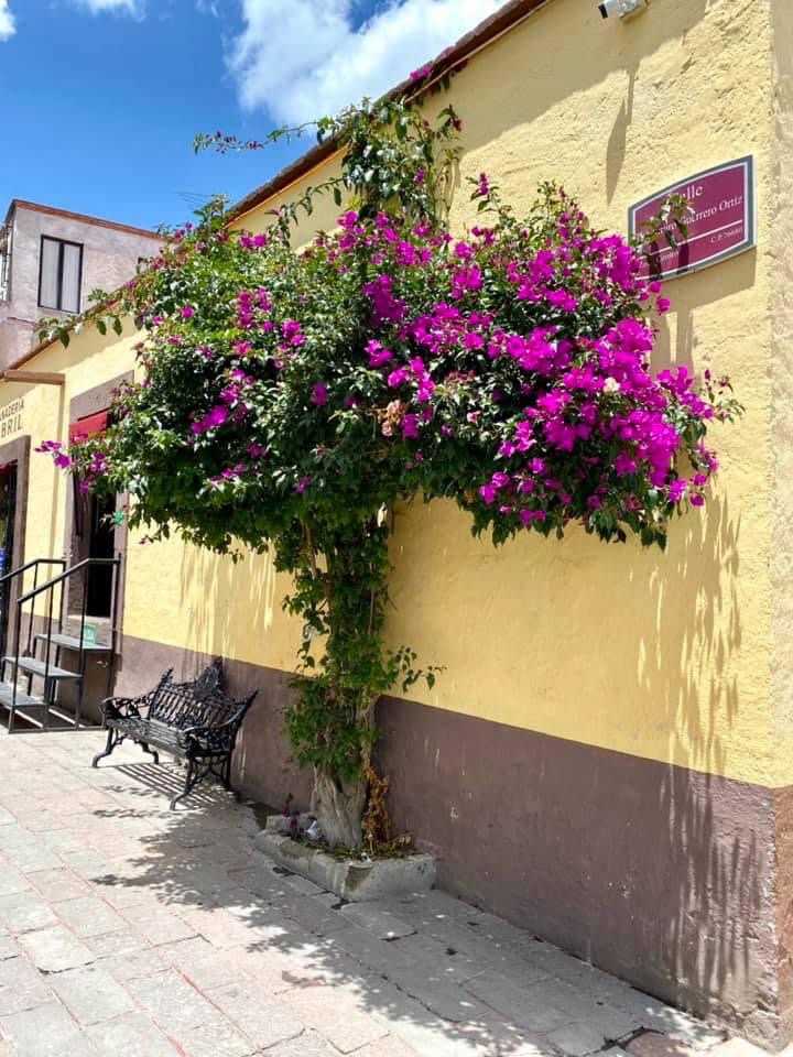 The houses were beautiful, lots of stone archways around the doors and the tall skinny cacti lining the sidewalks. The neighborhoods were painted with bright yellows and oranges, and everyone’s door was open in order to let in the cool morning air. Bernal had many more hills than I was expecting, so my calves got a good workout lol The massive bursts of pink flowers above the doorways made for some great scenery along the way as I headed to the main square.