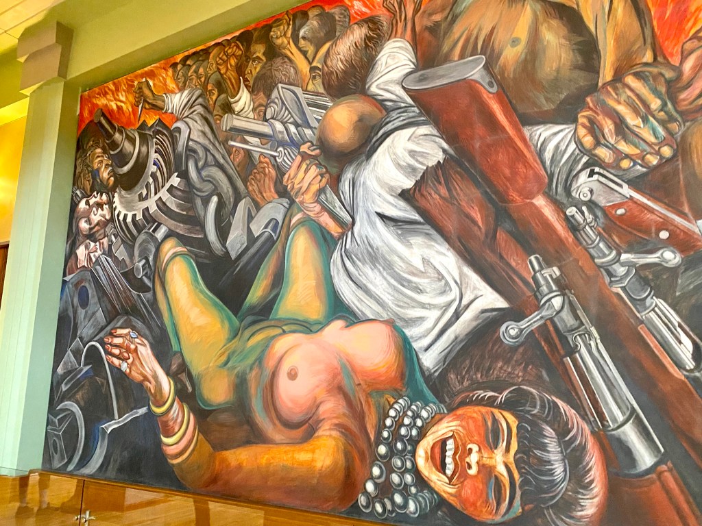 I had a pastry on top of the Sears building with an amazing view of the Bellas Artes, took a time laps video of the people in the square and the biking groups that look like little clusters of ants, rushing here and there. People were dressed up like superheroes, selling water and candy bars. This museum is stunning and has massive Diego Rivera paintings on every floor, and beautiful rusty red marble floors, walls and ceilings.