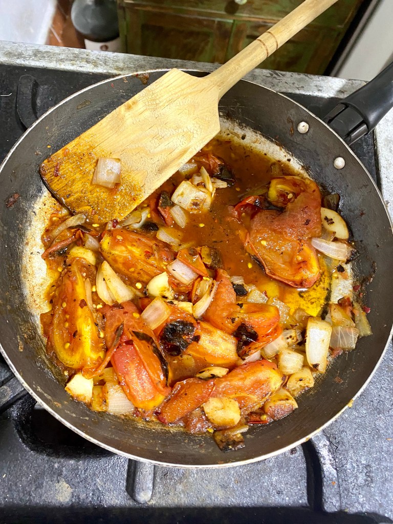 That was the green sauce. The red sauce had more savory peppers and garlic and black-roasted onions (Aka onions roasted until they’re nearly charred…delicious haha). Not spicy really, maybe a spicy pepper added on top but I can’t remember this one being too intense. In Mexico, most of the spicy peppers used in salsas are green instead of red.