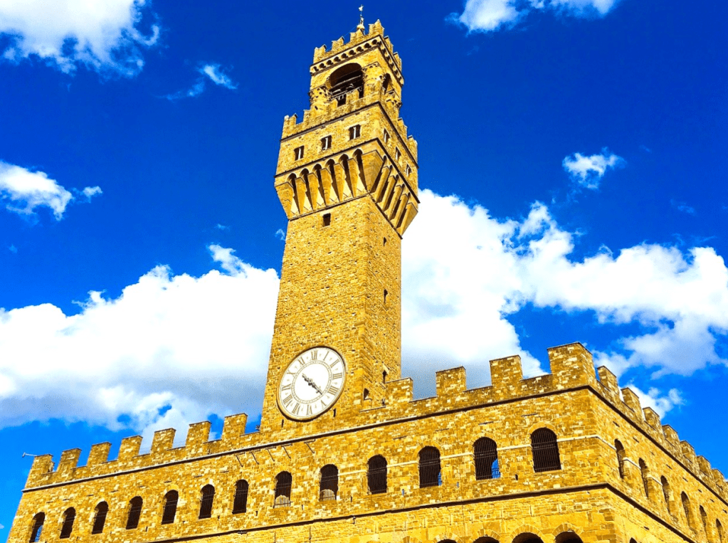 The Palazzo Vecchio, Florence’s town hall, stands as a symbol of the city’s political and artistic heritage. Built in the early 14th century, the palazzo has served as the seat of the Florentine government for centuries. Its imposing structure and iconic tower dominate the Piazza della Signoria, reflecting the city’s medieval power.