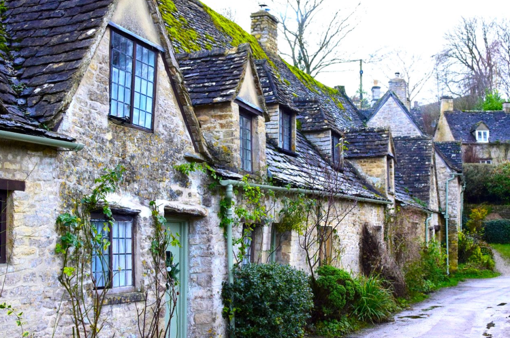 Located in the heart of the Cotswolds, Bibury is often referred to as the most beautiful village in England. The village is famous for its honey-colored stone cottages, particularly Arlington Row, a row of weavers’ cottages dating back to the 14th century. The cottages, with their steeply pitched roofs and charming gardens, are a quintessential example of English rural architecture.